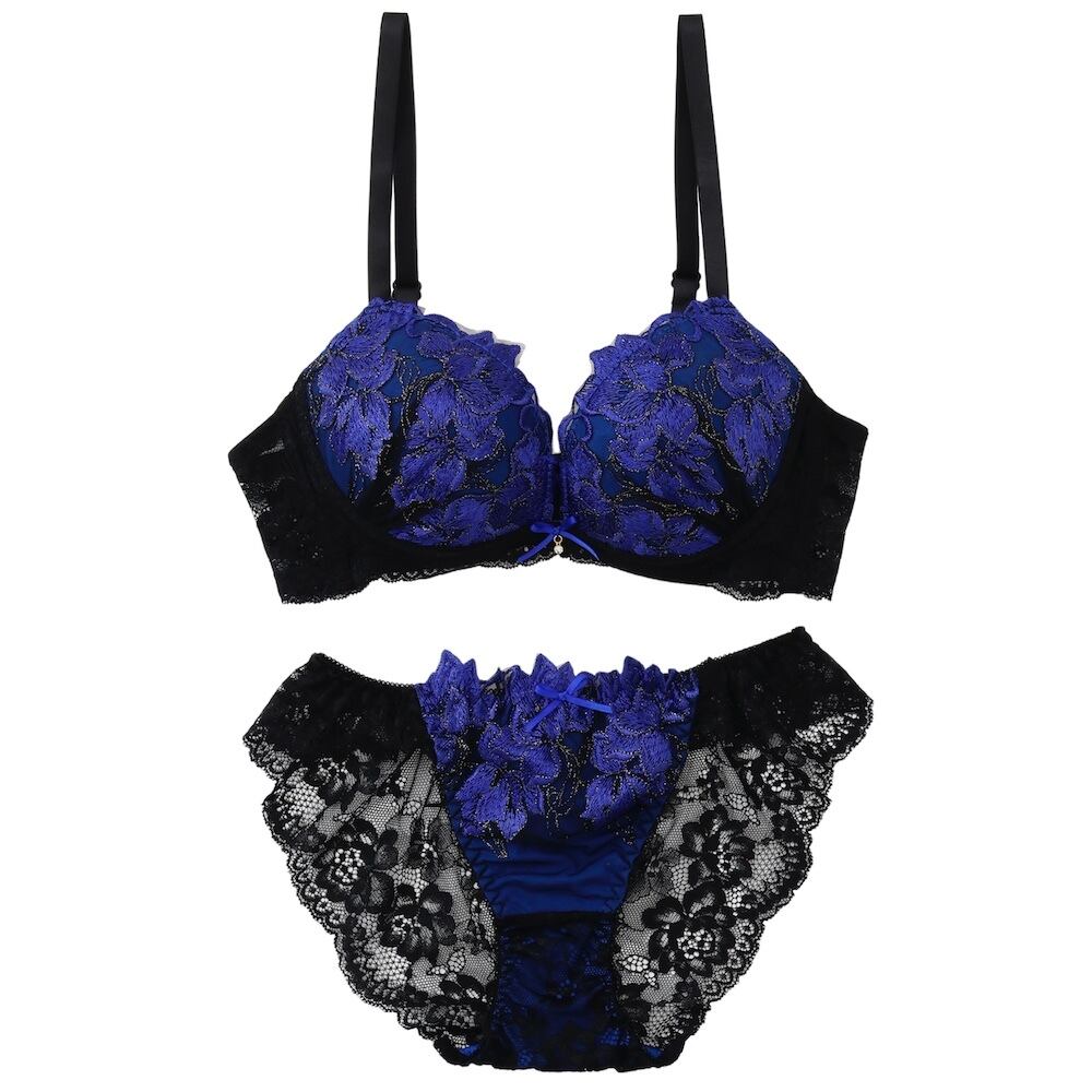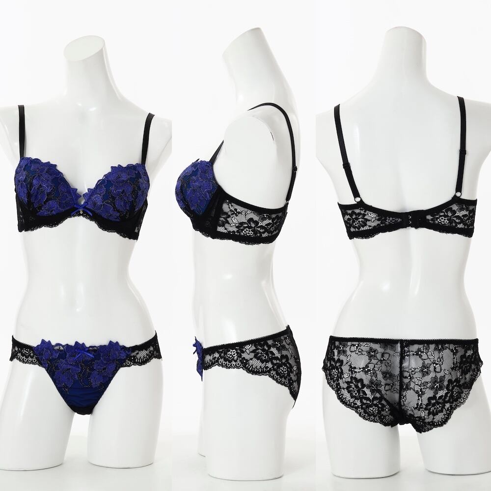 色鮮やかな大バラ刺繍が目を惹くブラとショーツの下着セットです。