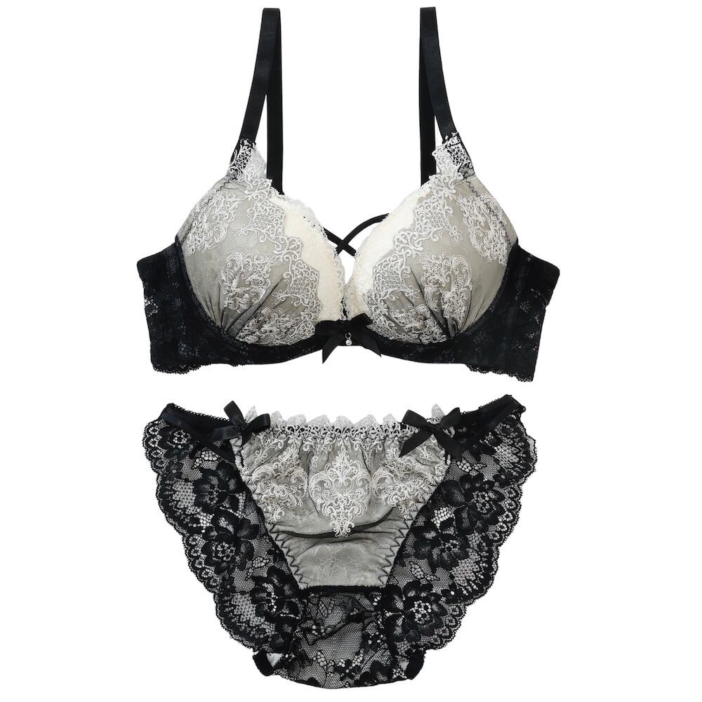 ゴシック調のボタニカル柄のレースとシアー感がエレガントな魅力のブラとショーツセットです。