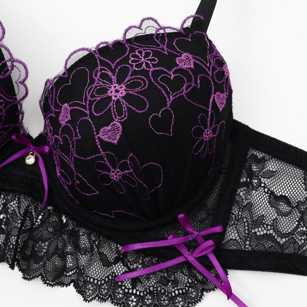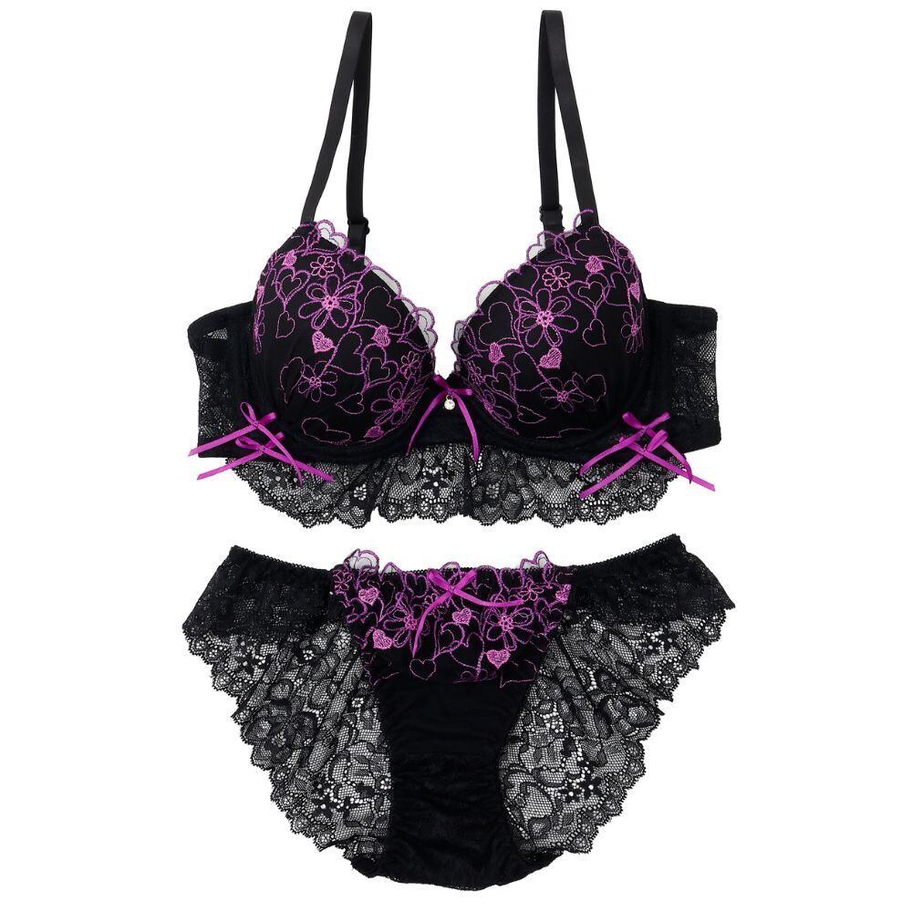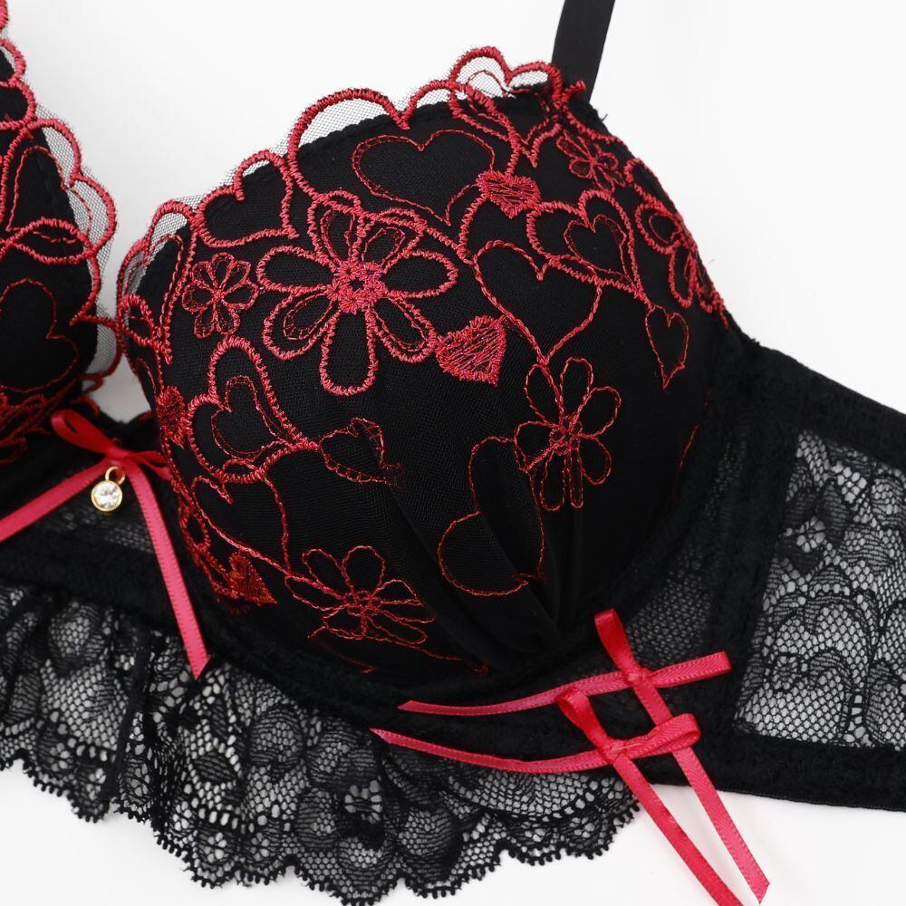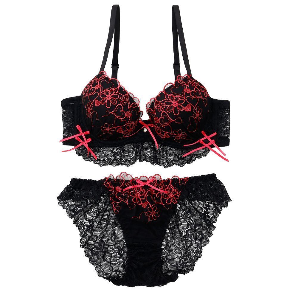 色鮮やかな刺繍糸でハートの刺繍をあしらったブラとショーツの下着セットです。